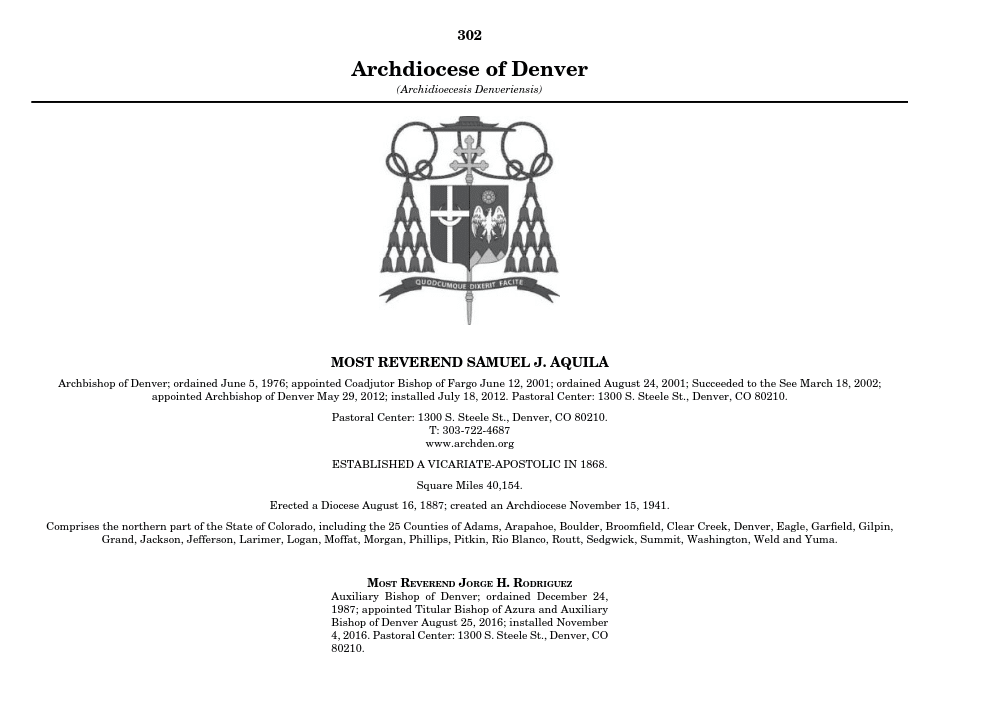 The official data related to contact information and boundaries is in the Official Catholic Directory, which is a paid product. To get a sense of the directory you can see this sample page for the Archdiocese of Denver: