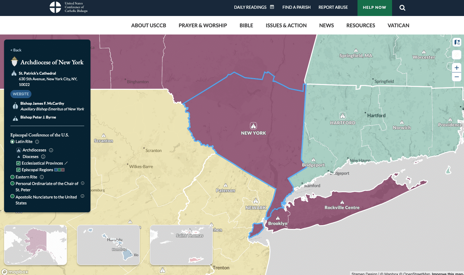 Designing and creating an interactive diocesan map for USCCB