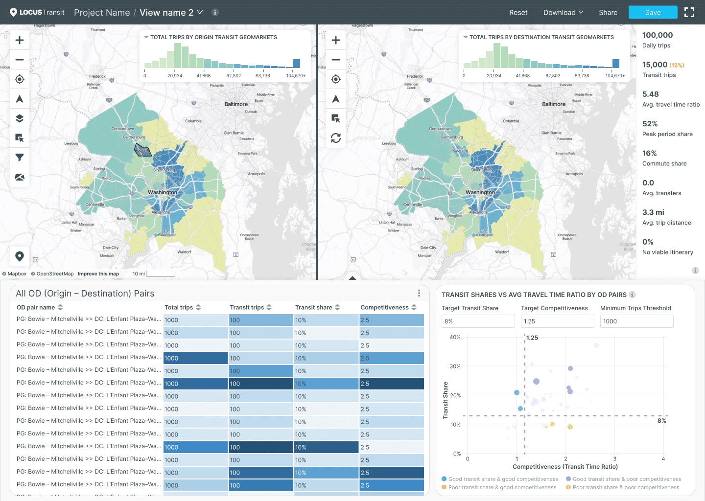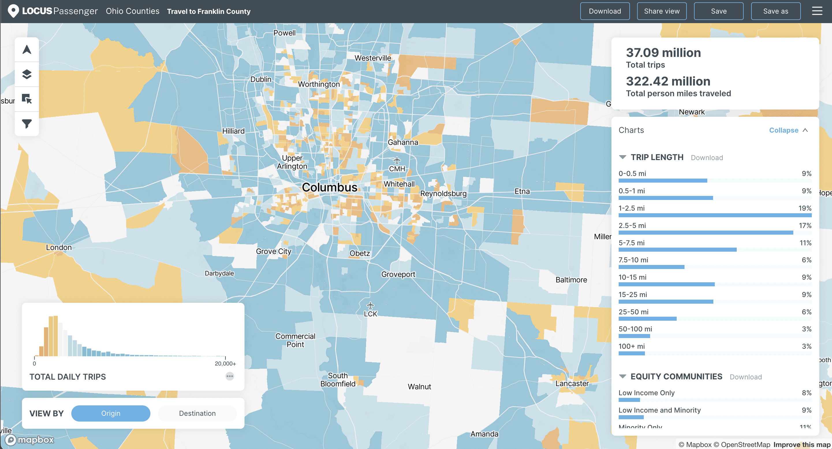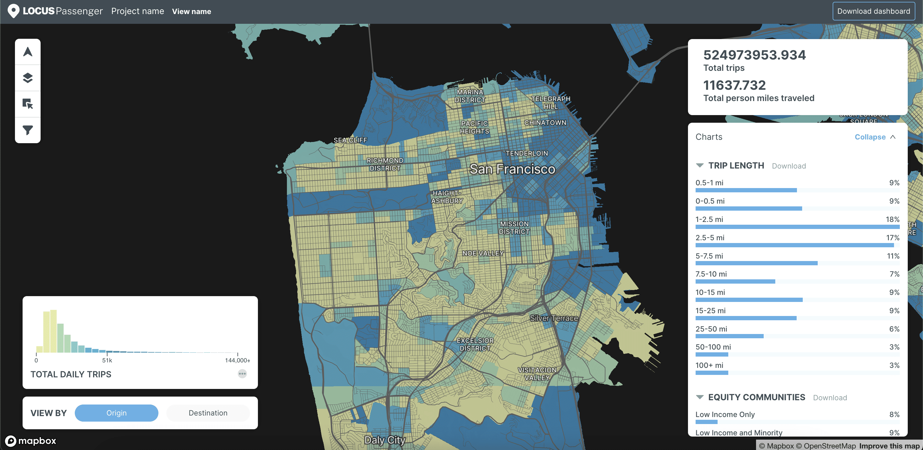 We first got to work creating designs for a new data portal and subsequently worked with a third party to help them implement the designs for production. We then created new dashboard designs and working prototypes for their general LOCUS Passenger dashboard as well as their LOCUS Transit dashboard. We worked to create new ways of visualizing their data on the map as well as in secondary visuals, all the while refreshing the dashboards’ visual design.